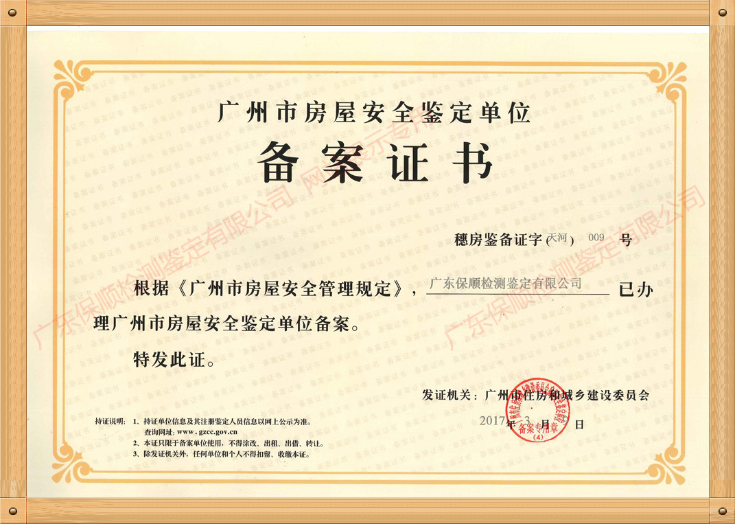 廣東保順檢測鑒定有限公司主營:房屋安全鑒定、特種行業年檢房屋鑒定、危房鑒定、道路橋梁檢測、司法鑒定等,是一家20年+專業建筑房屋鑒定機構。