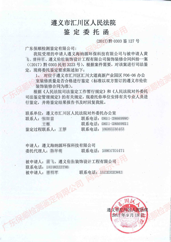 委托單位:貴州省遵義市匯川區人民法院